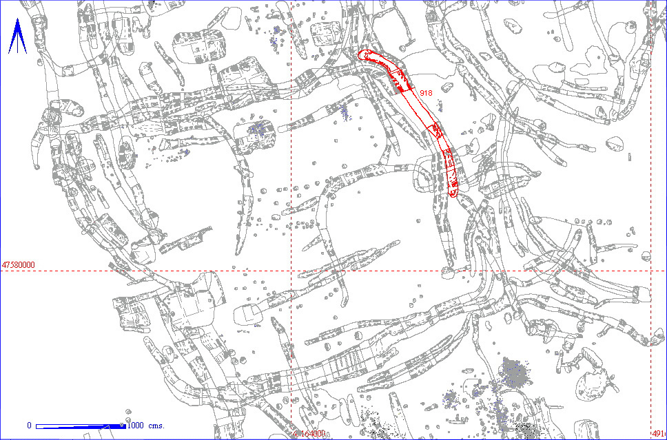 | 012AD00918 | DITCH CUT | LINEAR | 390 | 48 | 32 | U-SHAPED | DITCH CUT. CUT INTO SOLID CHALK ALTHOUGH AT S END CUT INTO HILLWASH OF 10% CHALK INCLUSIONS. CUT BY DITCH 753/4. APPEARS TO CUT 872/3. |