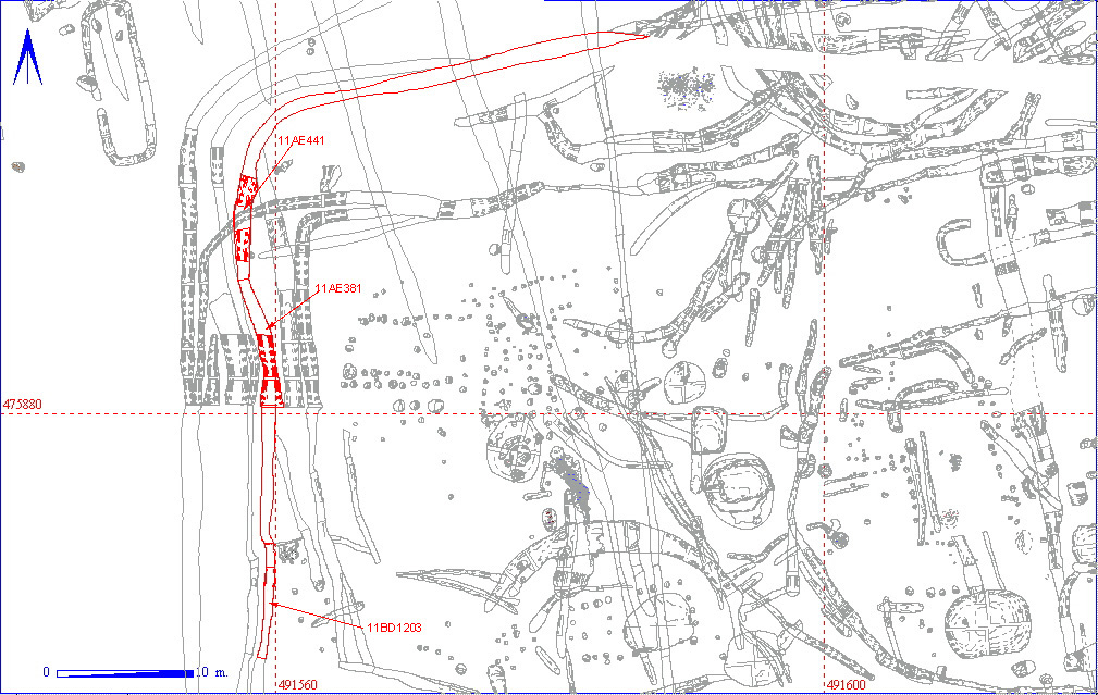 | 011BD01203 | DITCH CUT | LINEAR | 828 | 80 | 5 | FLAT BASED U | ONE OF TWO SIMILAR DITCHES ALIGNED N/S. ONLY SMALL SECTION EXCAVATED. NO FURTHER RECORD IN CONTEXT BOOK. |